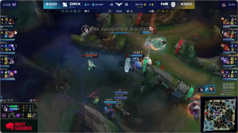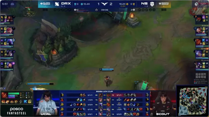 17分钟,妮蔻绕后开团,DRX打出0换2