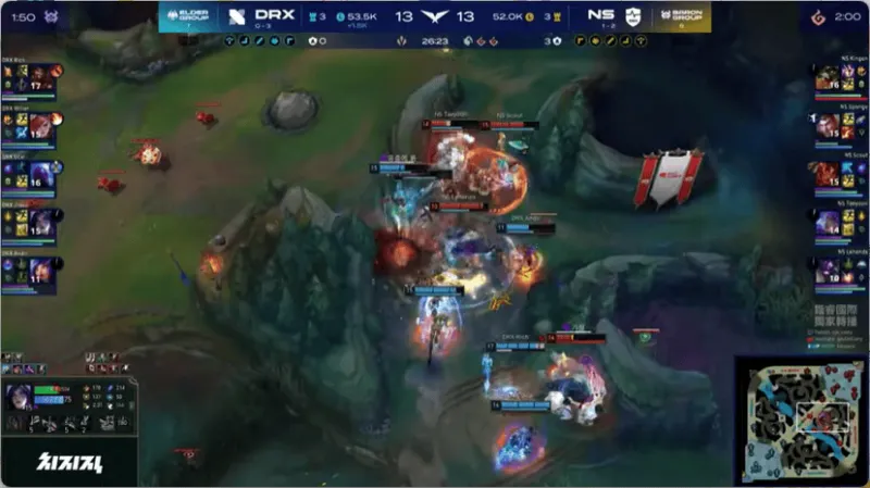 26分钟, 卡莎野区团战直接进场,DRX打出1换4